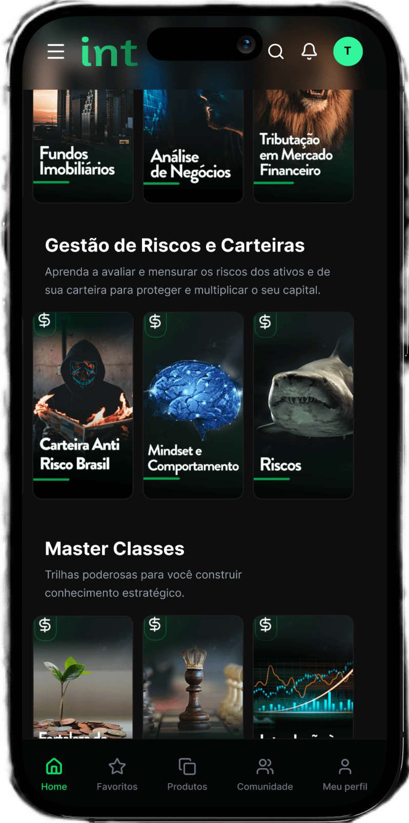 Como parte da experiência, o INT inclui uma comunidade exclusiva, voltada à troca qualificada, discussão de cenários e aprofundamento prático dos conteúdos e suporte, formado por pessoas que compartilham o mesmo objetivo: evoluir todos os dias, juntos.